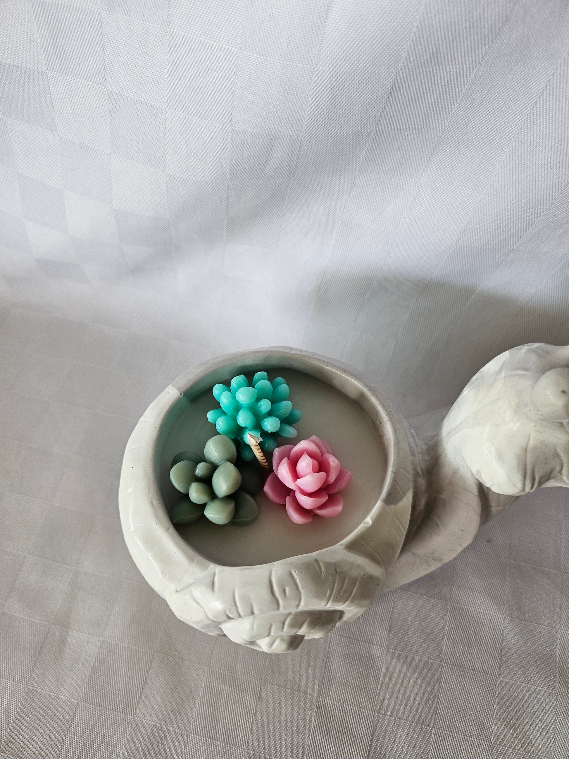 Ajouter une touche de douceur et de caractère à votre intérieur avec ma bougie parfumée artisanale, coulée à la main dans un contenant unique en jesmonite. Chaque pièce est soigneusement fabriquée dans mon atelier, ce qui en fait un objet décoratif à part entière.